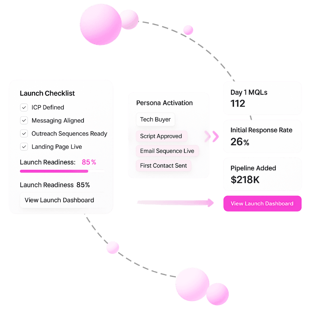 We set up real time launch analytics. From click through and conversion rates to pipeline contribution you’ll see exactly which tactics fuel momentum and we’ll recommend daily optimizations.